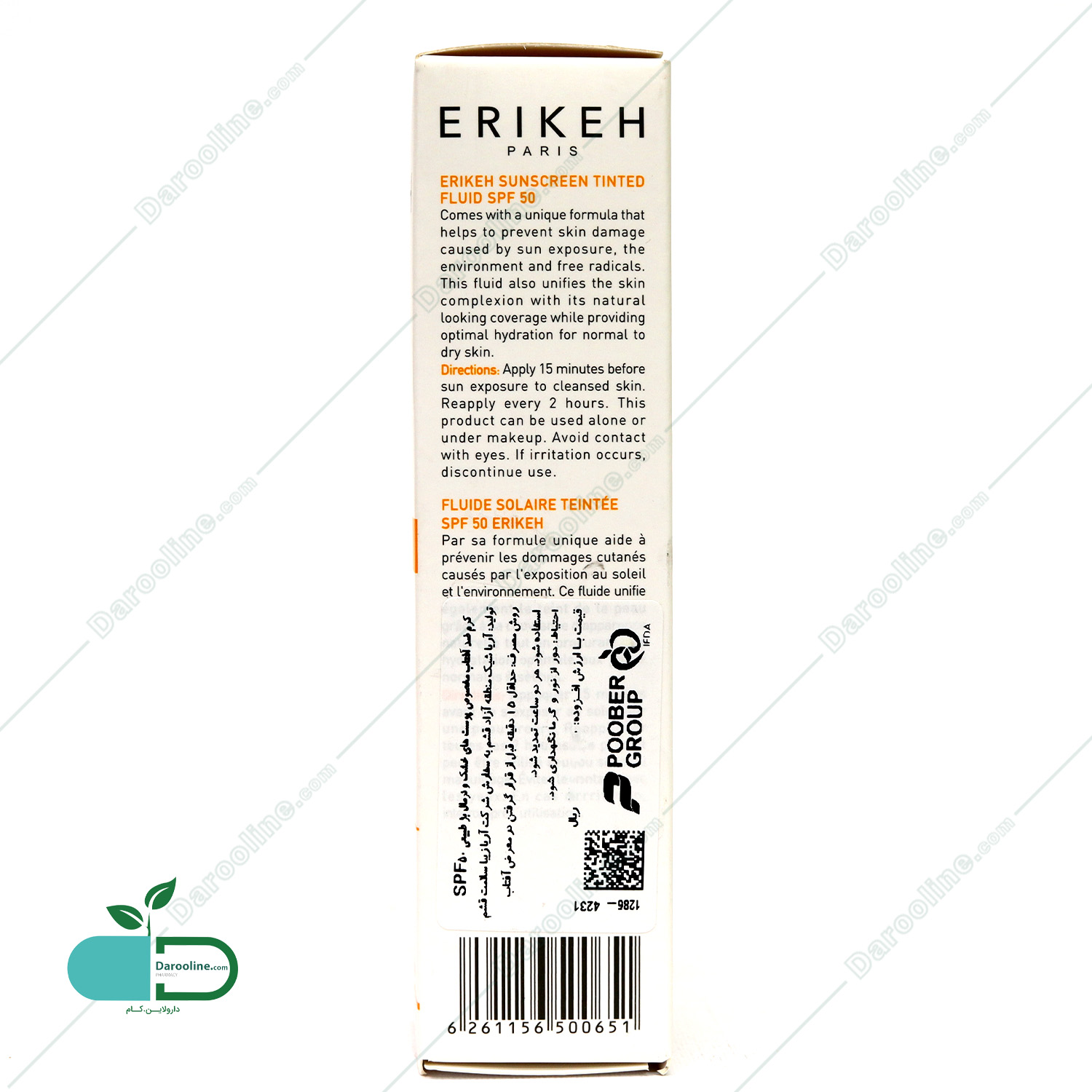 ترکیبات کرم ضد آفتاب رنگی اریکه SPF50 بژ طبیعی 50 میل