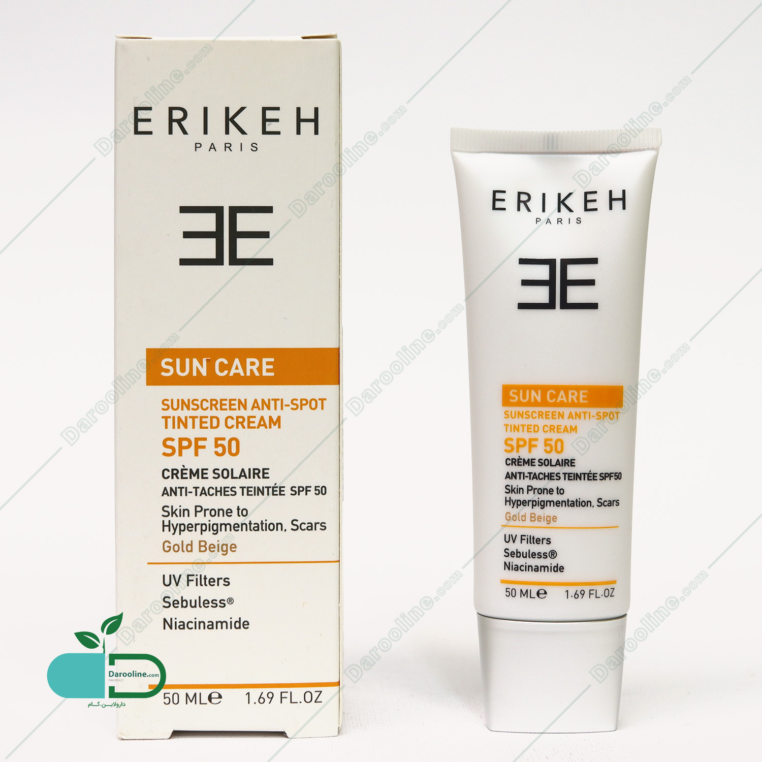 کرم ضد آفتاب ضد لک رنگی اریکه SPF50 بژ طلایی 50 میل ERIKEH SUNSCREEN ANTI-SPOT TINTED CREAM SPF 50 GOLD BEIGE 50 ML یک ضد آفتاب مناسب برای پوستهای دارای لک است. خرید کرم ضد آفتاب ضد لک رنگی اریکه SPF50 بژ طلایی 50 میل از دارولاین با قیمت مناسب.