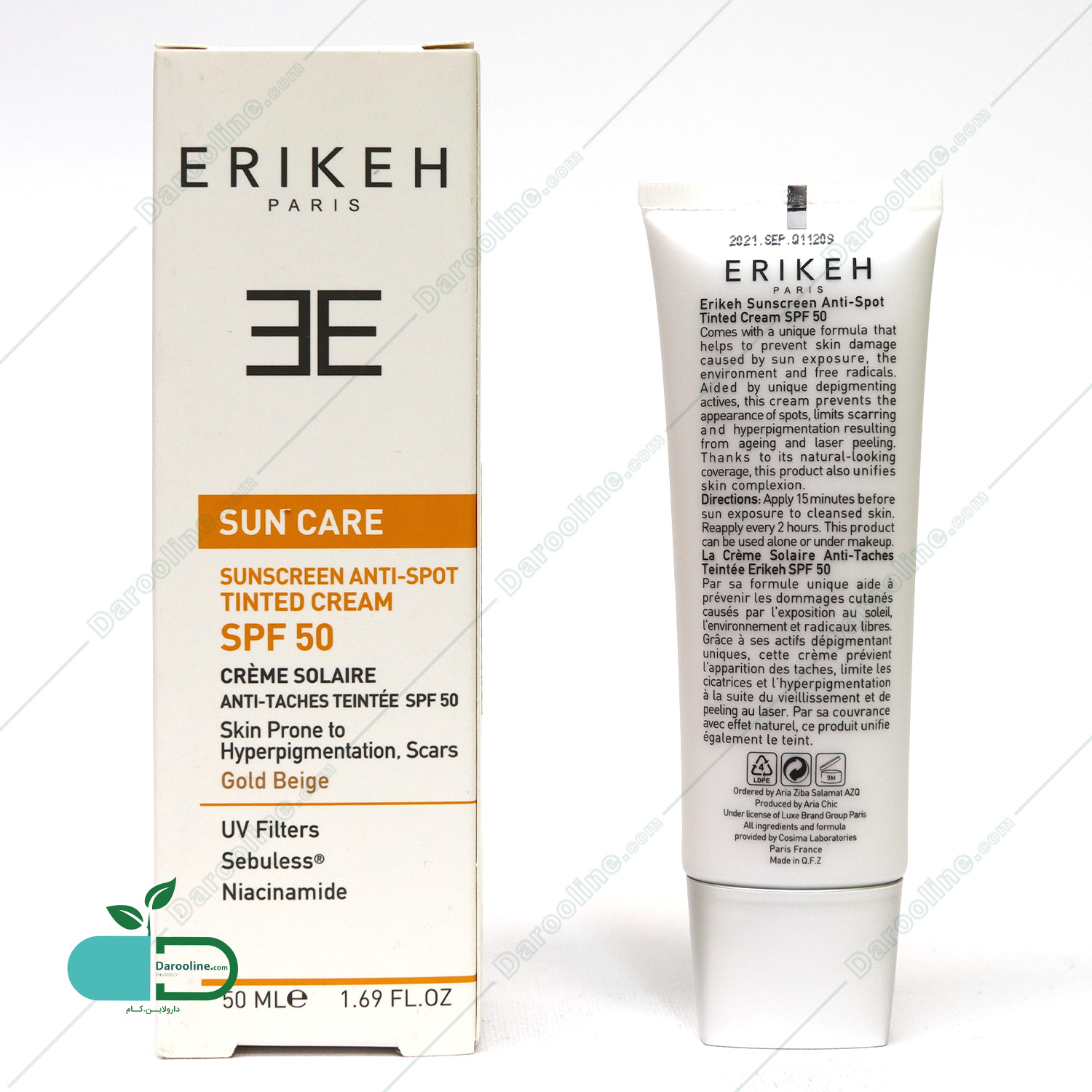 بررسی کرم ضد آفتاب ضد لک رنگی اریکه SPF50 بژ طلایی 50 میل