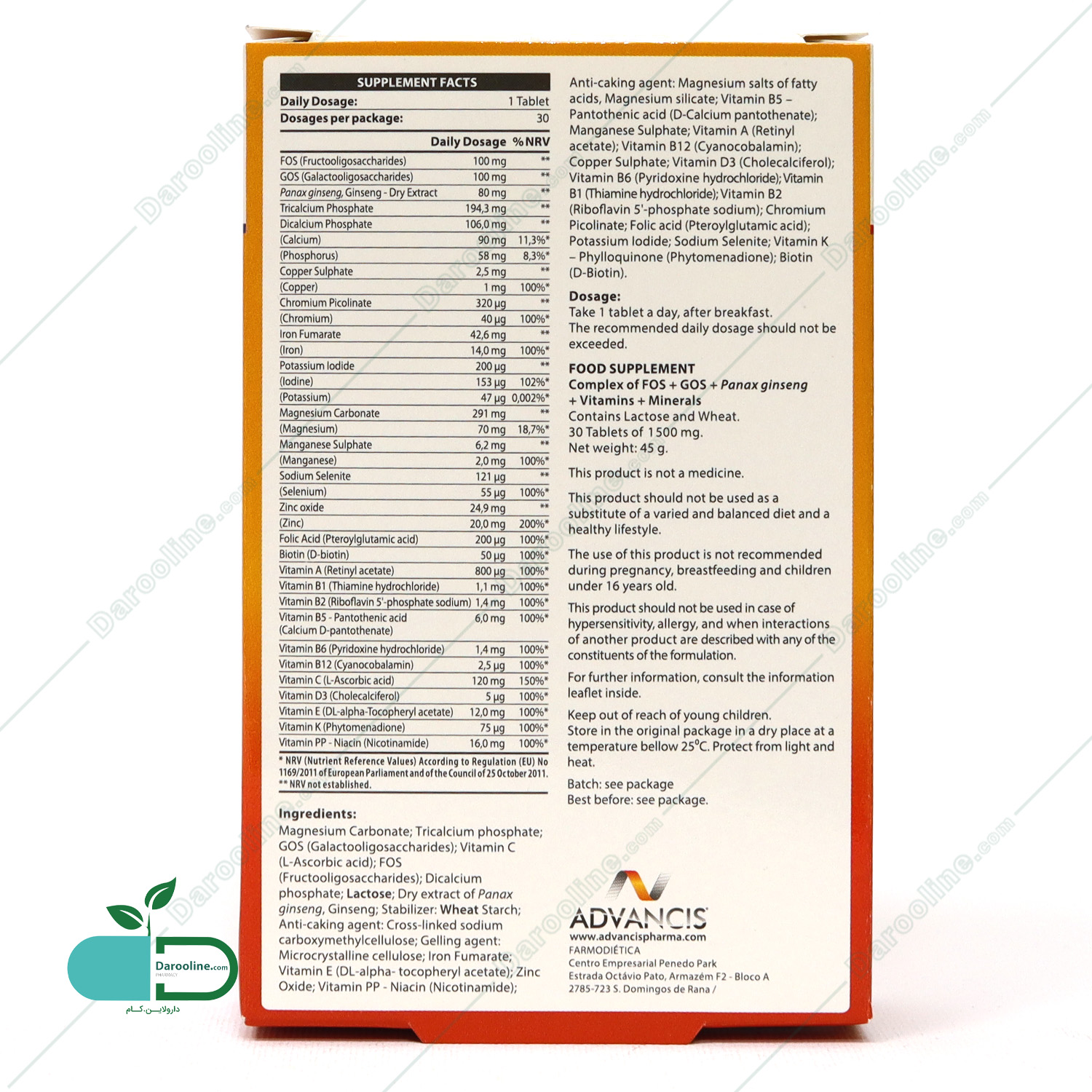ترکیبات قرص انرژی ویتامین + جینسنگ ادونسیس