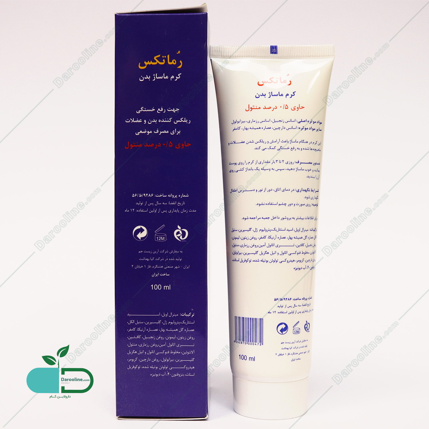 اثر سریع و ماندگار: اثر تسکینی کرم روماتکس (ماساژ بدن) اولی ژن 100 میل به سرعت احساس شده و برای مدت طولانی باقی میماند.