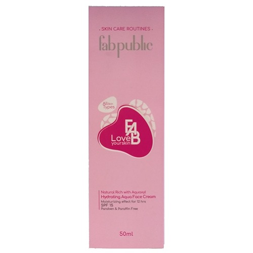 کرم آبرسان صورت فاب پابلیک 50 میل Hydrating Aqua Face Cream +SPF15 یک محصول بدون پارافن و پارابن برای آبرسانی به پوست است. خرید کرم آبرسان صورت فاب پابلیک 50 میل از دارولاین با قیمت مناسب.